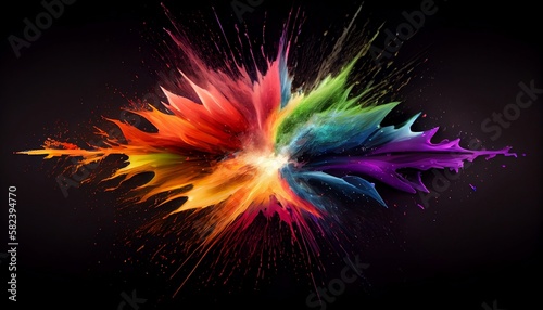 Generative AI, Illustration, Rainbow Blast: Capture the raw power and energy of a rainbow-colored blast, with bright and bold colors
