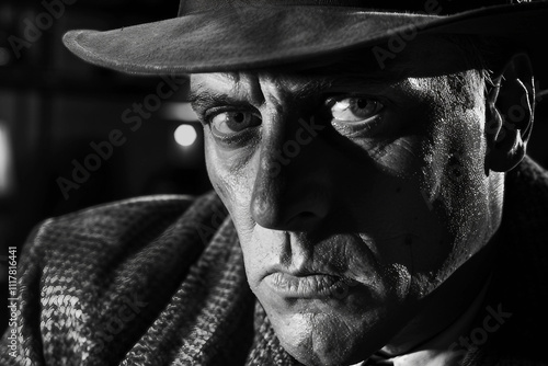 Generative AI Image of Retro Mafia Gang Leader in Intense Noir Setting with Detective Vibes