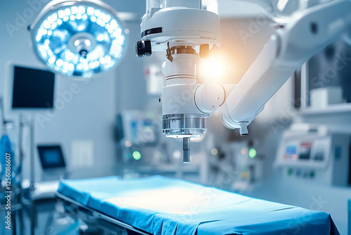 Generative AI image of surgeons performing a medical operation in a high-tech surgical room with advanced medical equipment