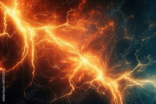Generative ai on theme of scary bright electric lightning bolt with branches in the night dark sky