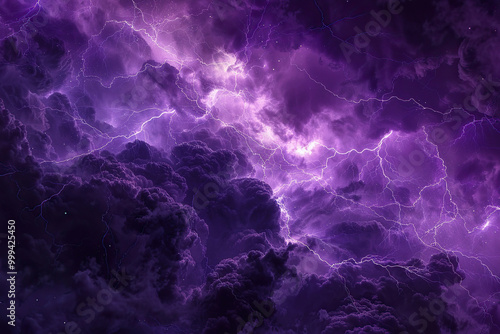 Generative ai on theme of scary bright electric lightning bolt with branches in the night dark sky