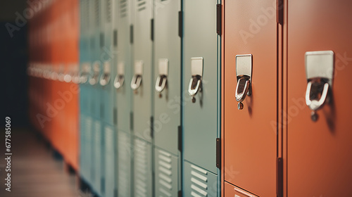 Generative AI, Row of high school lockers in the hallway, locker room