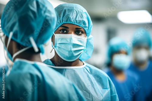 Generative IA picture modern operating room in futuristic surgery clinic team of professionals operating patient