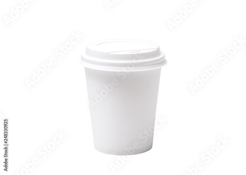 Generic plain white paper coffee cup. To put your logo or copy on it. White paper Cup isolated on white background