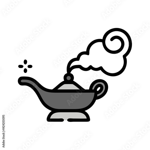 Genie Lamp with Smoke Icon Representing Magical Wishes and Mystical Power