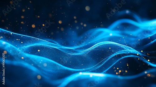 Gentle blue waves illuminated by soft ambient light against a dark backdrop in a serene setting