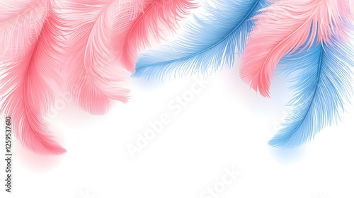 Gentle Feathers in Pink and Blue Abstract Illustration on White Background for Design Projects