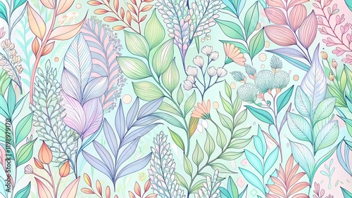 Gentle Pastel Floral Pattern with Delicate Linework for Romantic Design Applications