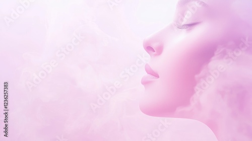 Gentle Side Profile of a Serene Woman Enveloped in Soft Swirls