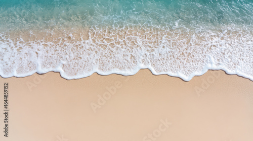 Gentle waves lap against sandy shore, creating serene coastal scene