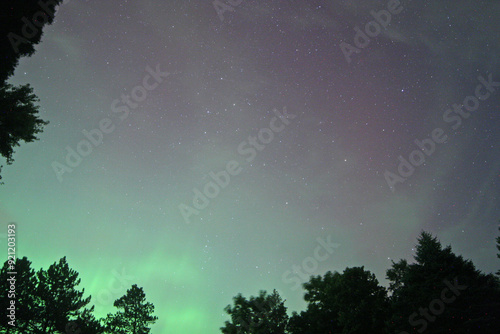 Geomagnetic storm hits Earth August 2024. Aurora with stars and colorful sky. Caused by a coronal mass ejection (CME) that erupted from the sun