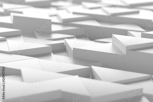 Geometric abstract background with white polygonal 3d shapes. 3d render.