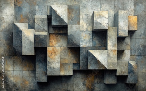 Geometric Abstract Concrete Background with Angular Patterns and Low-Key Lighting