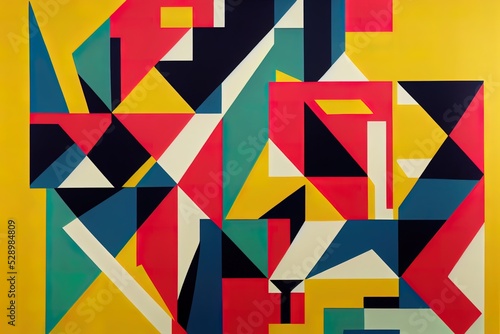 Geometric, abstract shapes pattern pop art wallpaper. Graphic backdrop with colors. Colorful flat background. Red, yellow blue shape. Creative modern, minimal texture.