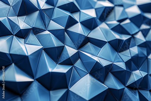 Geometric blue patterns create a textured 3D surface design