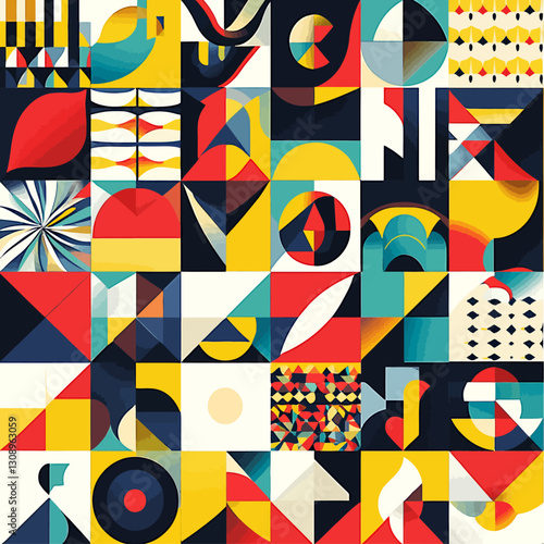 Geometric Composition: Abstract Mosaic with Retro Modernist Color Palette