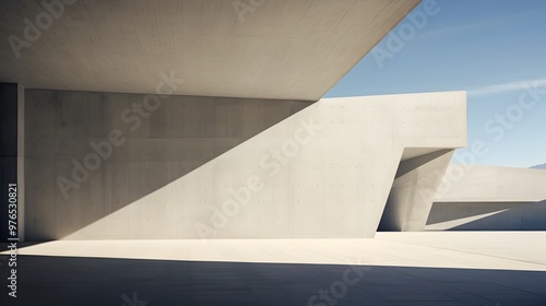 Geometric Concrete Architectural Structures in Barren Landscape with Sharp Shadows