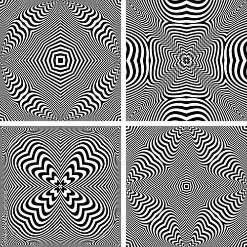 Geometric convex patterns set. Striped lines textures.
