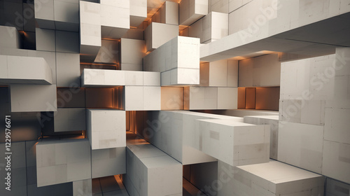 geometric cube pattern 3d rendering beige white gray brown gold architectural space depth