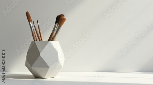Geometric holder showcasing an assortment of art brushes in a minimalist setting