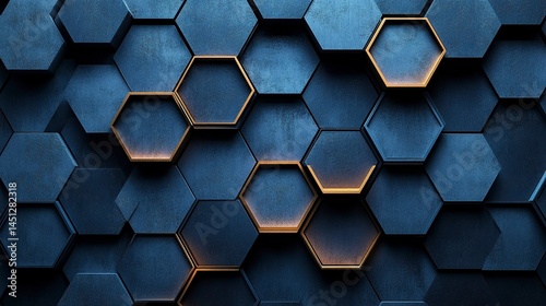 Geometric honeycomb structure in dark blue tones with subtle shadow effects