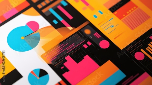 Geometric infographic with vivid tones, [business data concept], [balancing aesthetic appeal and informative content]