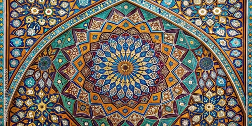 Geometric Lace of Persian Architecture: Intricate geometric patterns, intricate lacework, vibrant hues, Islamic geometry