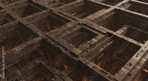 Geometric metallic labyrinth, brushed steel & deep browns. Complex, intricate, abstract background