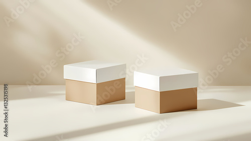 Geometric Minimalism: Two stacked, minimalist blocks cast in warm sunlight with intriguing shadows and textured paper.