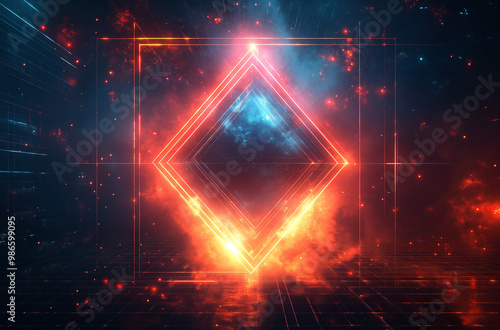 Geometric Motion: Triangular Frame with Rotating Segments in Bright Red