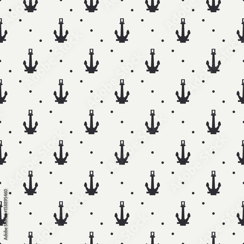 Geometric nautical seamless background pattern with steering wheel and anchor. Vector illustration texture for design, wallpaper. Line pattern. Wrapping paper. Scrapbook. Tiling. Graphic texture.