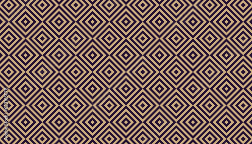 Geometric optical illusion quilted square seamless pattern. Op art blue and orange rhombus squares background vector illustration.