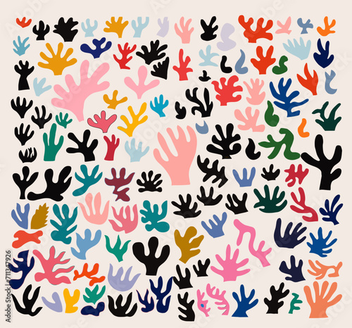 Geometric organic shapes in paper applique style Inspired by Matisse Vector abstract modern floral elements to create logos, templates, posters.