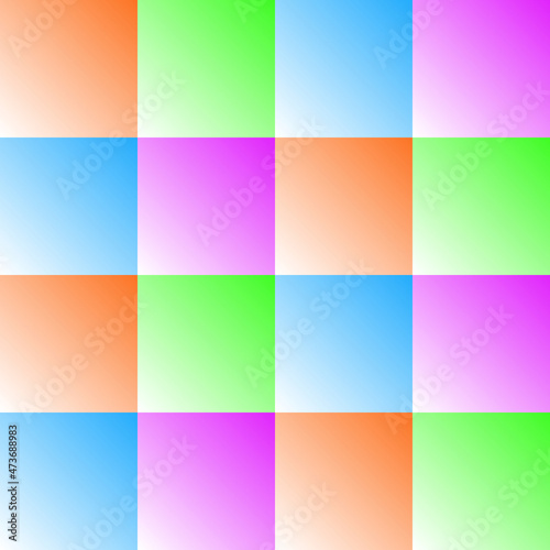 Geometric pattern of squares in orange, pink, green and blue shades for background. Seamless pattern of abstract elements with fill for textiles.