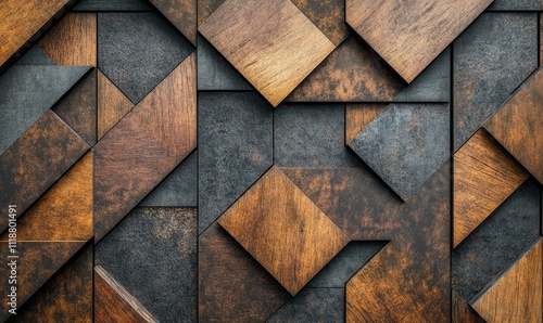 Geometric pattern with wood and metal textures