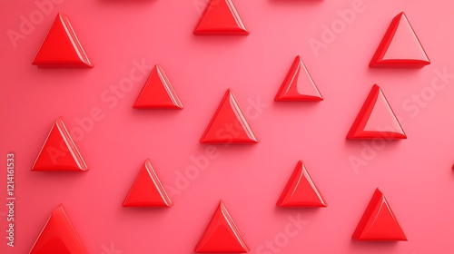 Geometric Red Triangles and Abstract Shapes on Pink Background for Modern Design Concepts