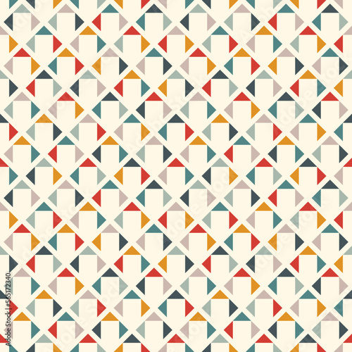 Geometric seamless pattern. Minimalist style print. Diamond grid motif ornament. Simple geo mini triangle background