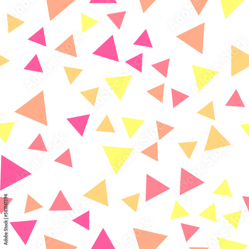 Geometric seamless pattern of pink, beige, orange, yellow triangles for textile, paper and other surfaces