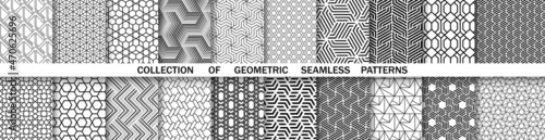 Geometric set of seamless black and white patterns. Simple vector graphics