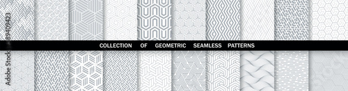 Geometric set of seamless gray and white patterns. Simpless vector graphics.