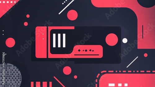 Geometric shapes in red and black create a minimalist design emphasizing modern aesthetics and striking visual contrast