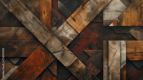 Geometric shapes with natural wood textures background, earthy color palette