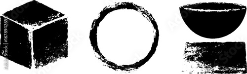 Geometric stencil art: black and white grunge shapes for unique design projects