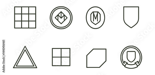 Geometric symbols icons set – grid, badge, shield, triangle, logo, seal, polygon