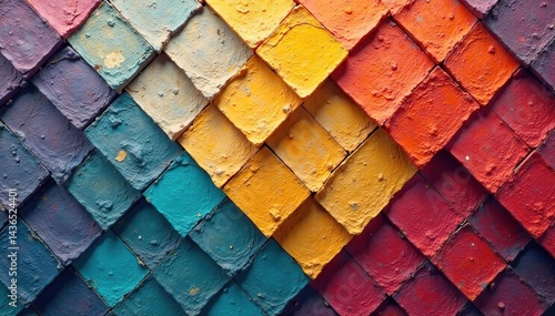 Geometric tile mosaic, repeating shapes Clean lines, solid colors , vibrant, colorful, interior