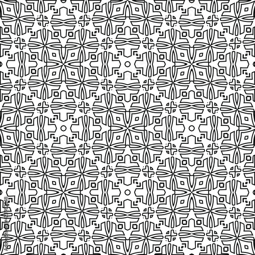 Geometric vector pattern with triangular elements. Seamless abstract ornament for wallpapers and backgrounds. Black and white colors.