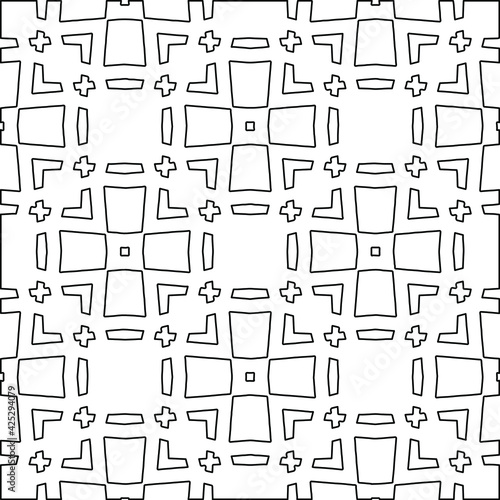 Geometric vector pattern with triangular elements. Seamless abstract ornament for wallpapers and backgrounds. Black and white colors.