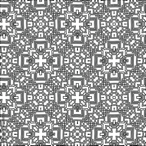 Geometric vector pattern with triangular elements. Seamless abstract ornament for wallpapers and backgrounds. Black and white colors.