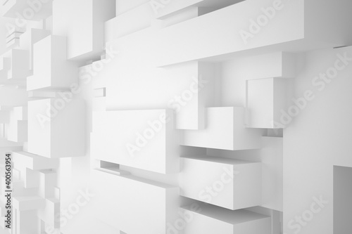 Geometrical shapes background. Black and white minimalist tech wall. Abstract 3D backdrop.