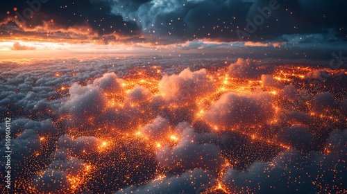 Geometrically arranged digital network connections emit light
